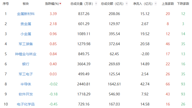中国经济网北京10月13日电 A股三大股指今日早盘低开,震荡反弹,跌幅收窄。截至临近中午,上证指数报3846.25点,跌幅1.30%;深证成指报13013.34点,跌幅2.56%;创业板指数报3019.81点,跌幅3.00%。分板块来看,新金属材料、贵金属、小金属等板块涨幅居前,电子消费品、汽车零部件、配料等板块跌幅居前。 A股市场板块盈亏排名